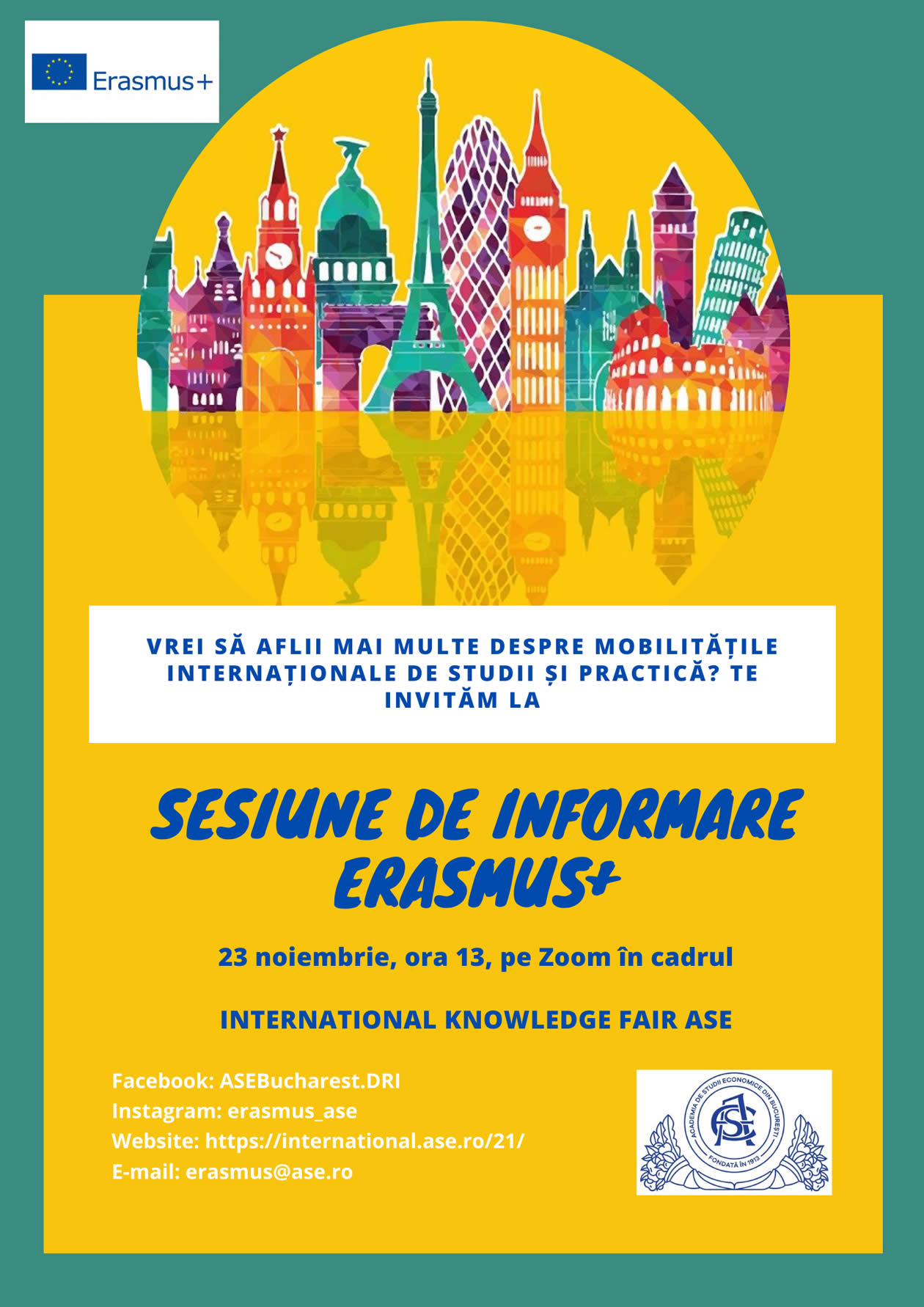 Cu ocazia International Knowledge Fair ASE 2021 Biroul Erasmus+ organizează 2 evenimente de promovare a mobilităților Erasmus+ de studiu și practică adresate studenților